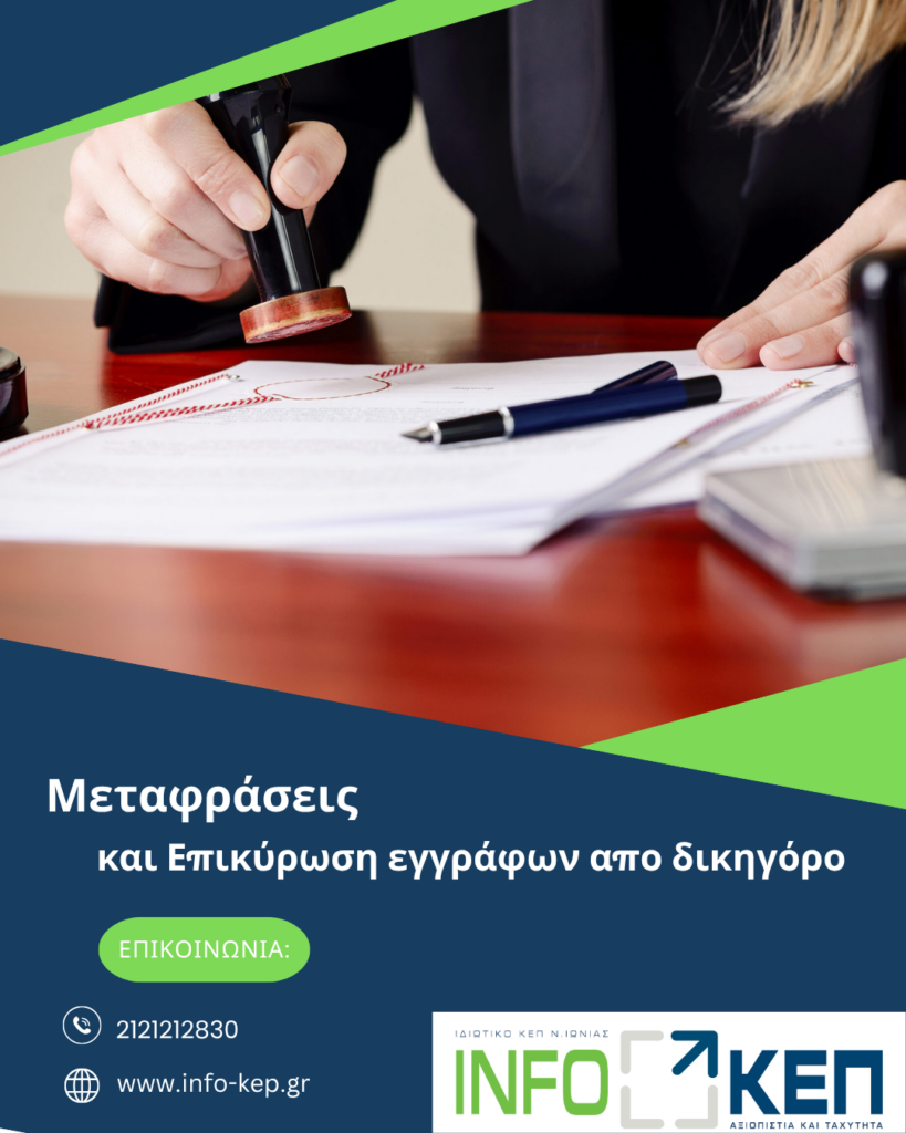 Ετοιμάζουμε την πλήρη μετάφραση και επικύρωση των εγγράφων σας για την κατάλληλη χρήση τους σε δημόσιους φορείς και λοιπές υπηρεσίες που σας ενδιαφέρουν.